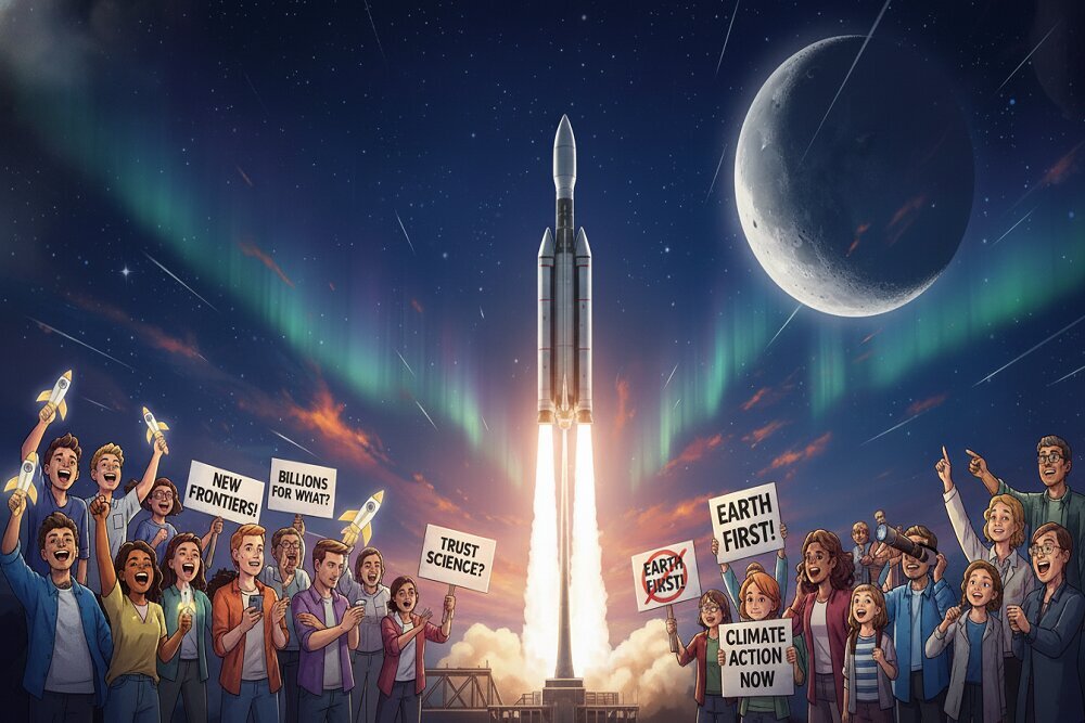 استیون کارتر فکر میکند که سفر به ماه اتلاف منابعی است که بهتر است صرف مقابله با بحران اقلیمی شود. بهتر است تهدید وجودی قریبالوقوع برای حیات روی زمین، یعنی تغییرات اقلیمی، مورد توجه قرار گیرد. اگر خیلی زود استفاده از سوختهای فسیلی را متوقف نکنیم، هیچ چیز دیگری اهمیتی نخواهد داشت.